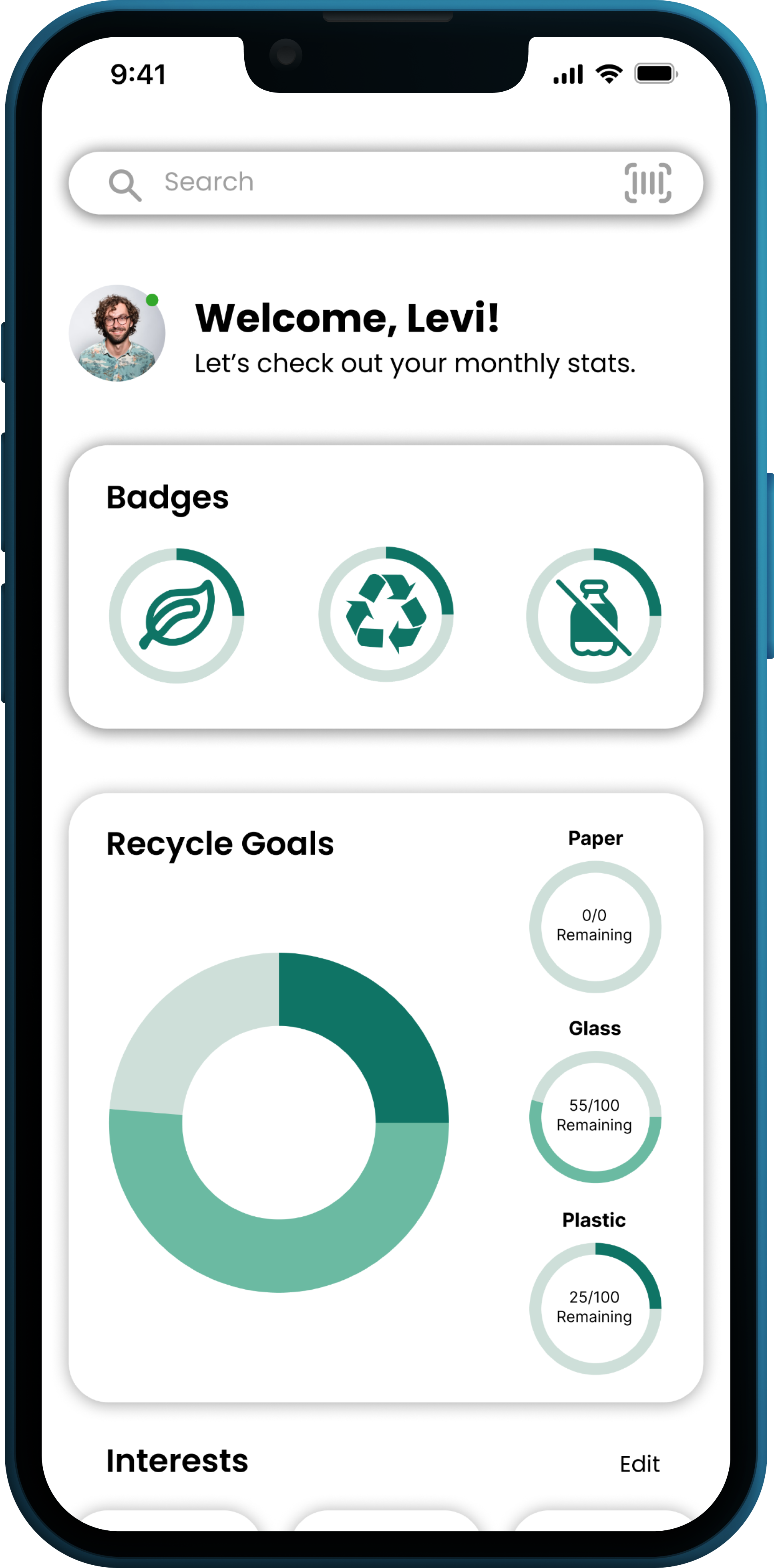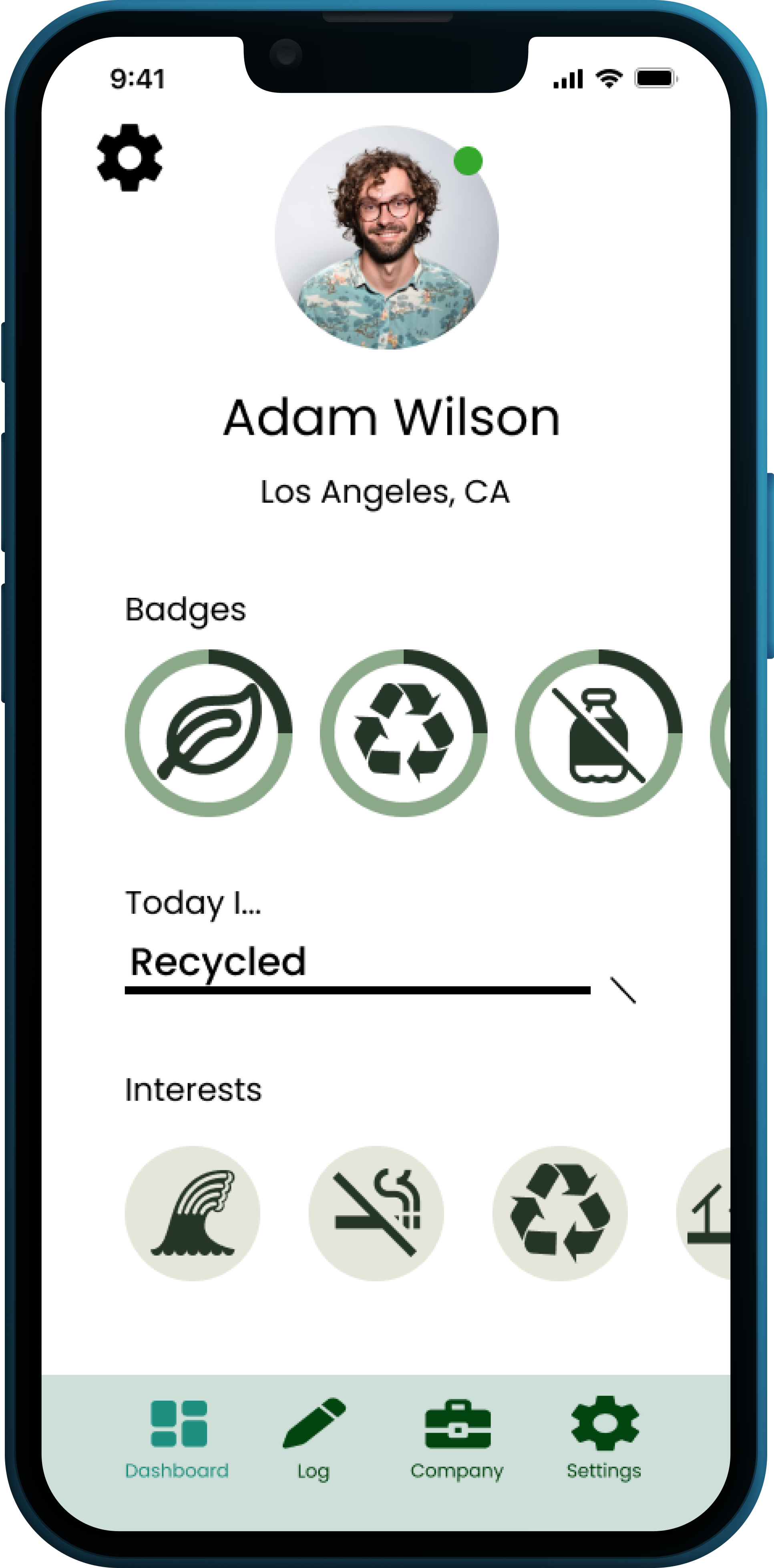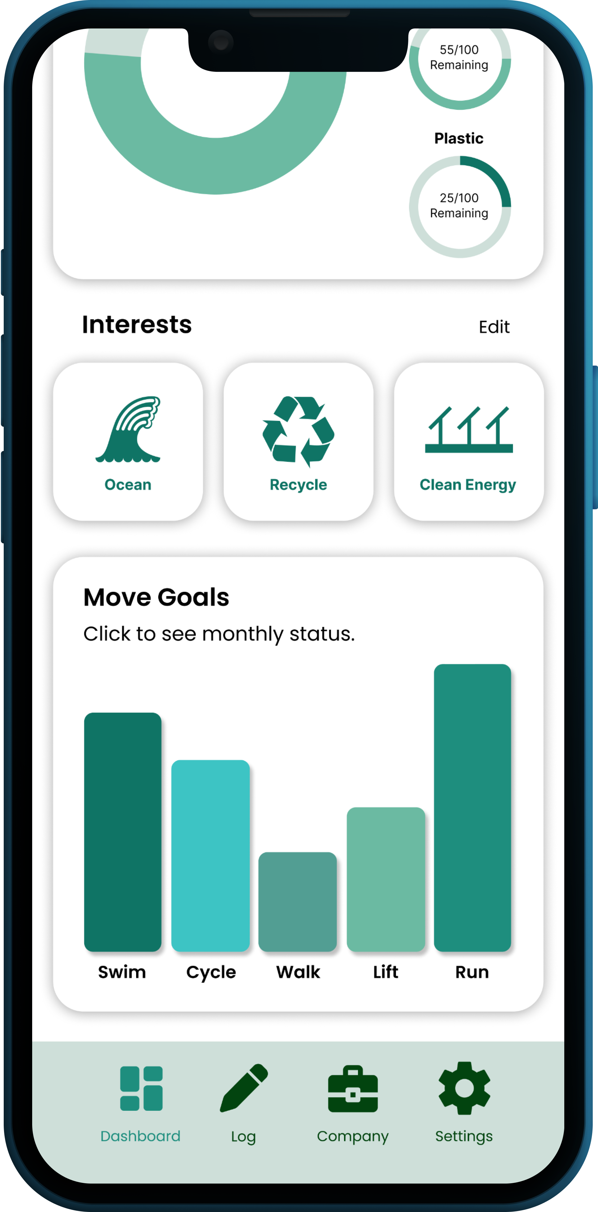 Through our research, we found that 100% of our users interviewed and surveyed, strongly desire a solution to track personal activities and goals. 92% of our survey participants expressed that a method to research and identify eco-friendly companies was important to them.